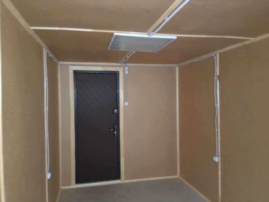 Металлическая бытовка с тамбуром 5,85 x 2,4 - Оргалит ДВП